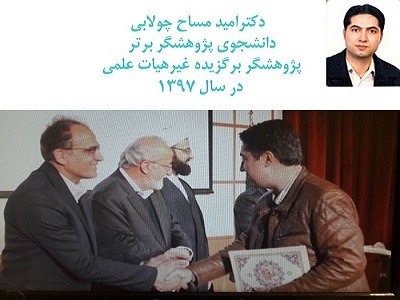 دکتر امید مساح چولابی به عنوان دانشجوی پژوهشگر برتر و همچنین پژوهشگر غیرهیات علمی این مرکز در سال 97 معرفی شدند.